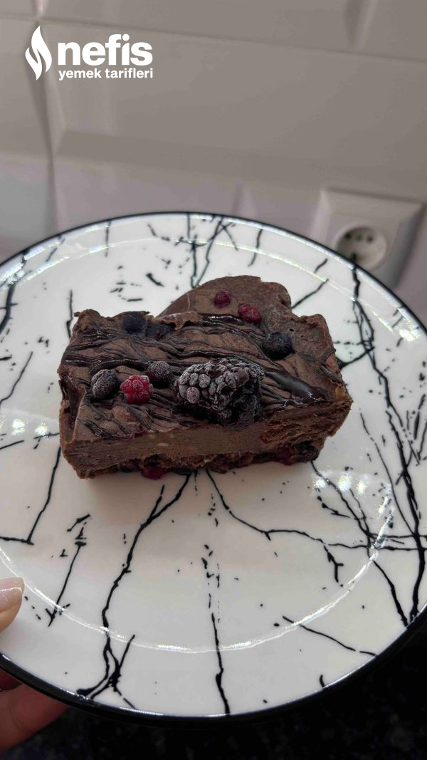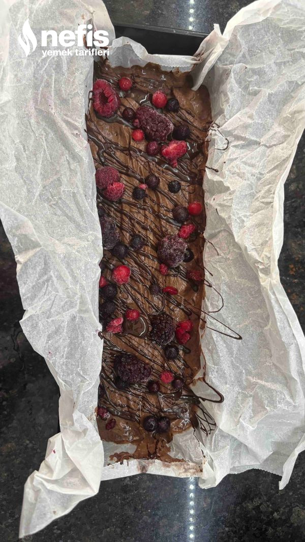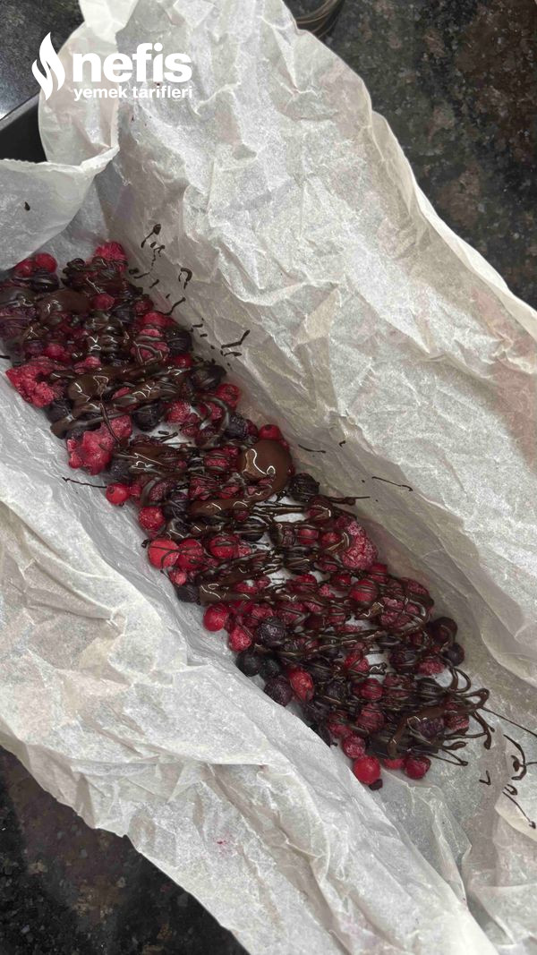 6. Çektirdikten sonra kalıbımıza döküyoruz ve isteye bağlı üzerini de benim üzere orman meyveleri ve çikolata ile süsleyebilirsiniz.