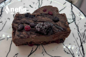 6. Çektirdikten sonra kalıbımıza döküyoruz ve isteye bağlı üzerini de benim üzere orman meyveleri ve çikolata ile süsleyebilirsiniz.
