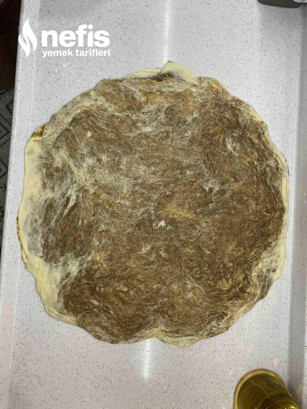5. Oklava ve çok az un ile her bir bezeyi tabak büyüklügünde açıyoruz.