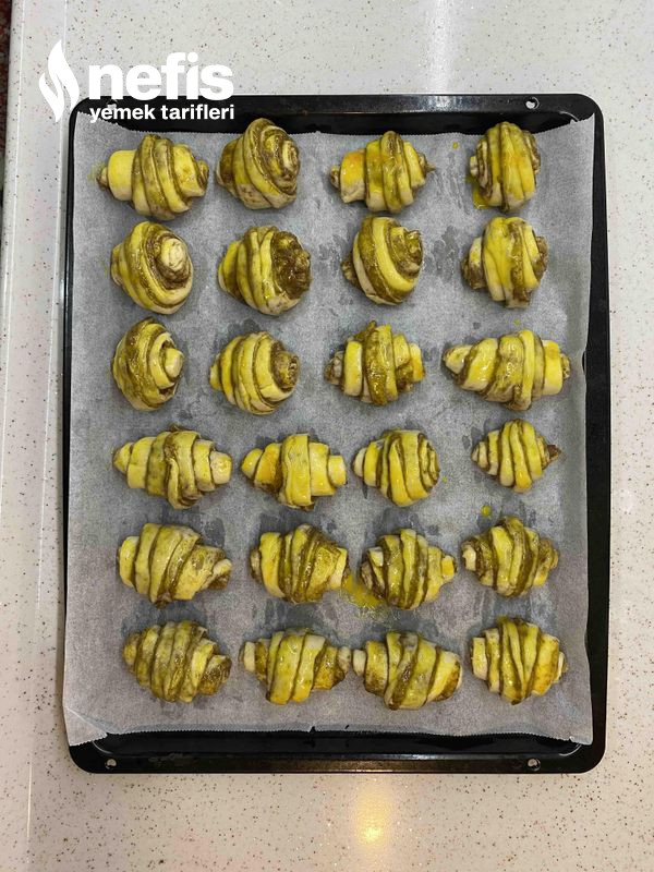 10. Yağlı kağıt serdiğim fırın tepsisine alıp üzerine yumurta sarısı sürdüm, 200 derecede kızarana kadar pişirdim.