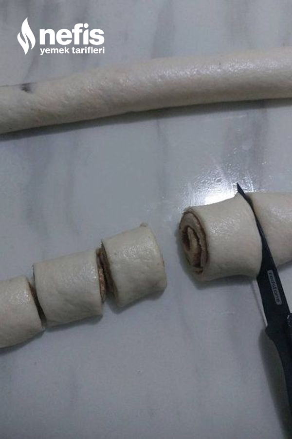 - Fırın tepsisi büyüklüğünde açınız üstüne ezilmiş haşhaşı ,hamurun tam ortasını yani keseceginiz yer hariç her tarafına sürünüz fotoğrafta görüldüğü üzere uzun kısmından başlayarak ortaya yanlışsız rulo yapınız bir bıçak yardımıyla hamuru dilediginiz büyüklükte katıyız.