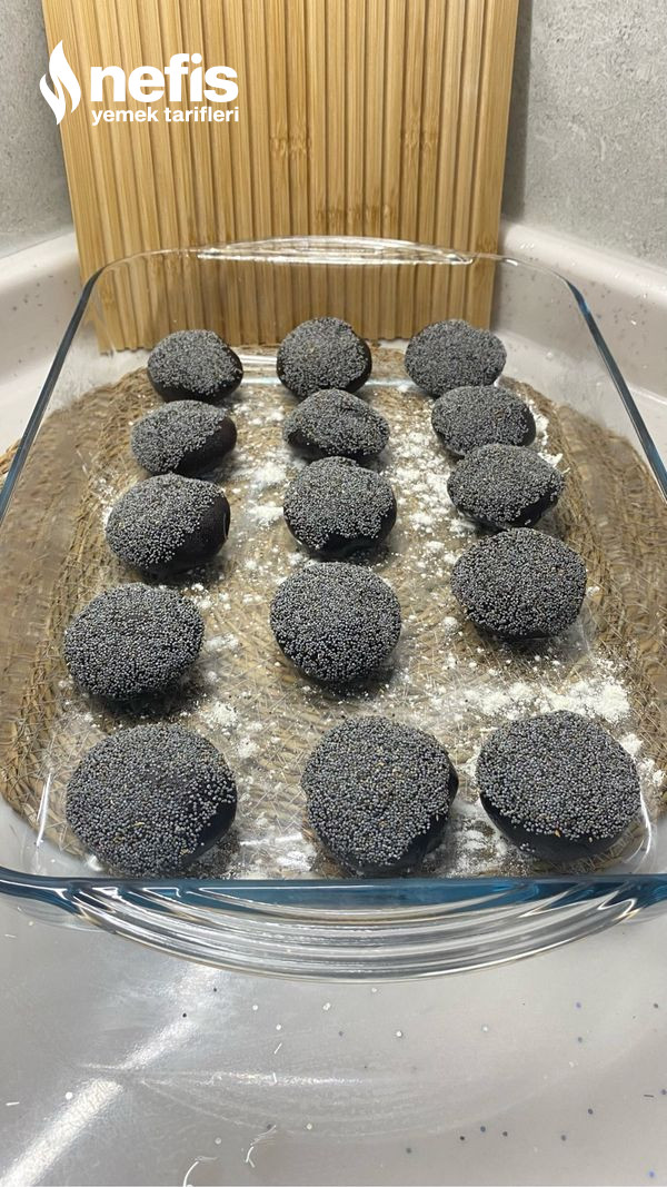 - Yuvarlayarak üst kısmını haşhaşa bulayıp tepsiye diziyoruz.