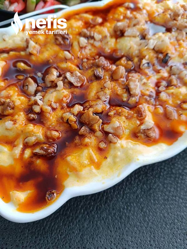 - Cezvede zeytinyağını kızdırın üzerine kırmızı biber ve cevizleri atıp sosunu hazırlayın.