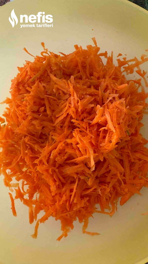 - Havuçların kabuklarını soyup rendeleyin ve geniş bir kaseye alın.