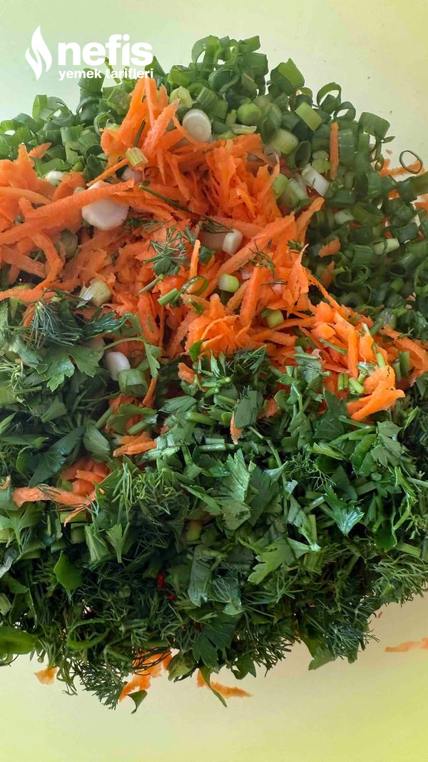 - İnce kıydığınız yeşillikler, un, yumurta, tuz ve karabiber ekleyip karıştırın.