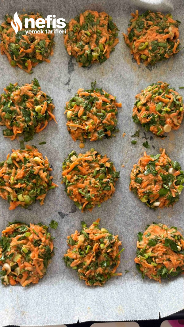 - Bir fırın tepsisine yağlı kâğıt serip bir kaşık yardımıyla yuvarlak kesimler dökün.