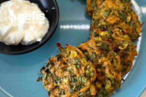 - Bir fırın tepsisine yağlı kâğıt serip bir kaşık yardımıyla yuvarlak kesimler dökün.
