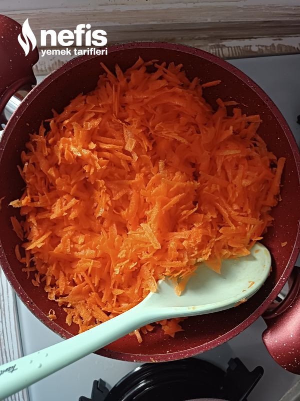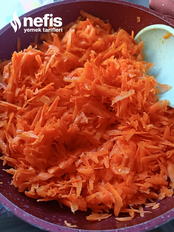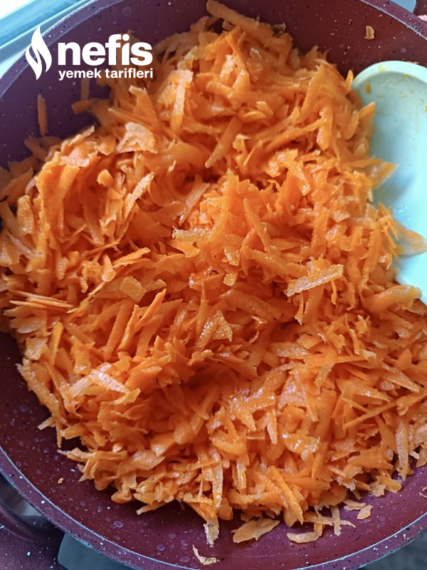2. Bir tavaya yağ dökelim ve rendelenmiş havuçları ek edelim ortada karıştırarak yaklaşık 10-15 dk kavuralım.