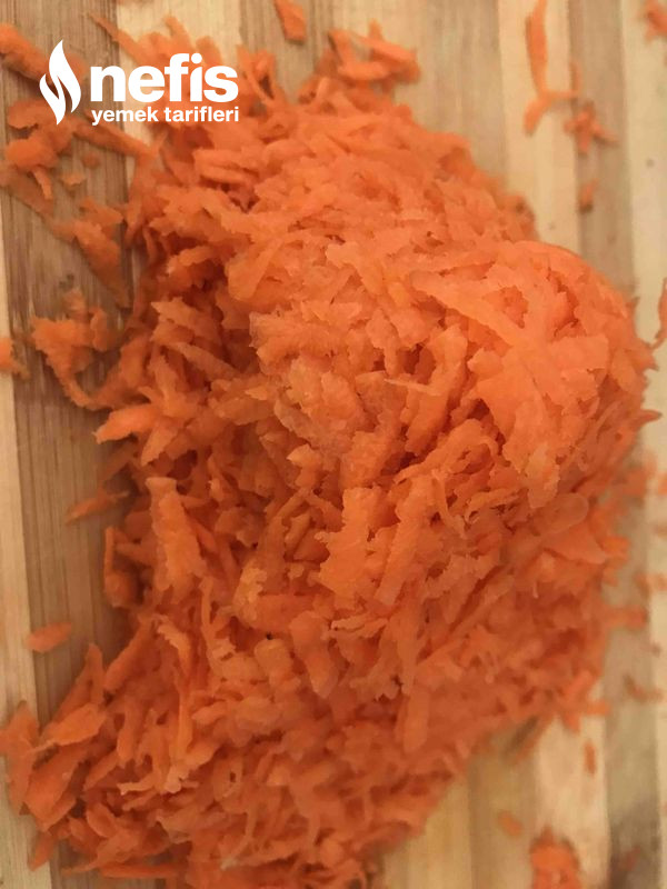 - Öncelikle havuçlar yıkanıp soyularak rendelenir. Suyu peçete yardımıyla alınır.