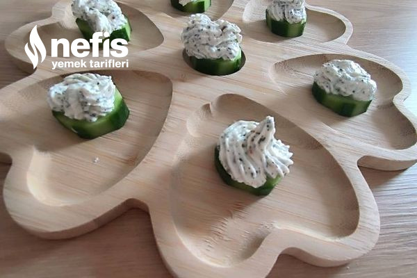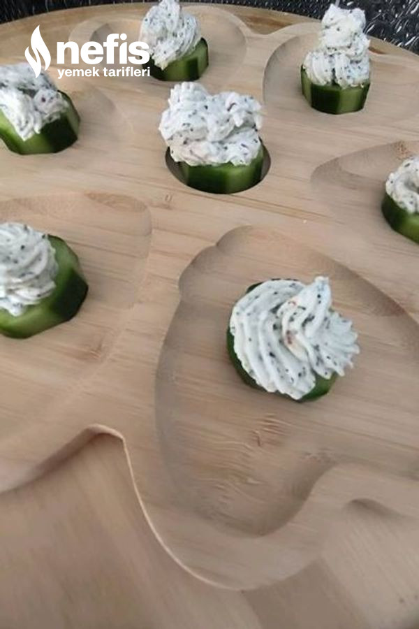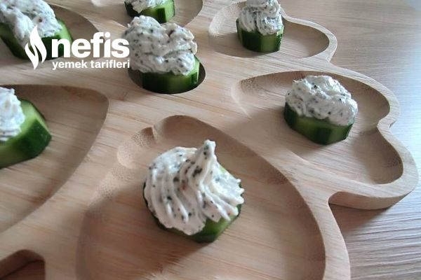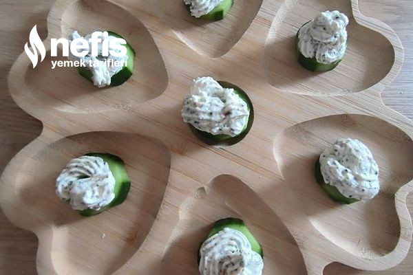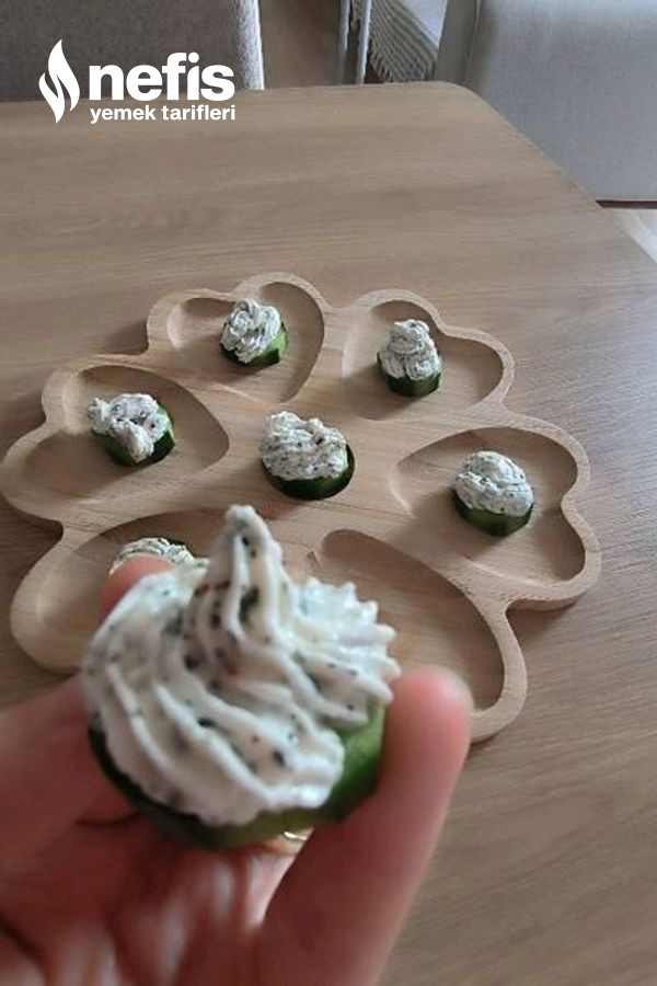 - Salatalık doğranır. Sıkma torbasıyla karışım üzerine sıkılır.