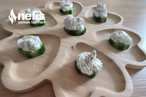 - Salatalık doğranır. Sıkma torbasıyla karışım üzerine sıkılır.