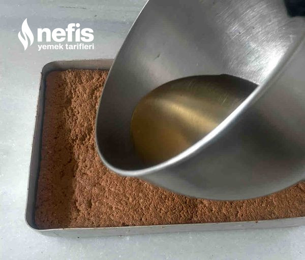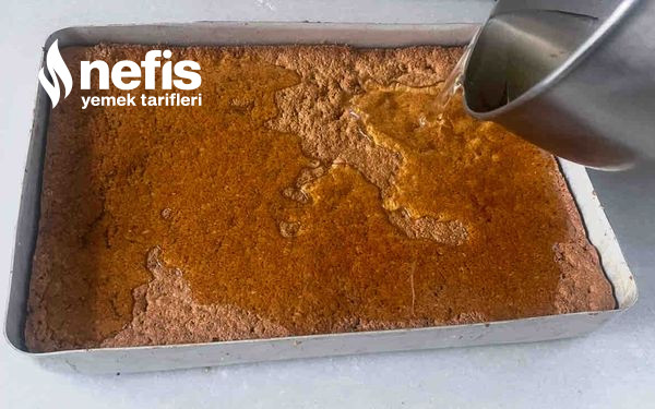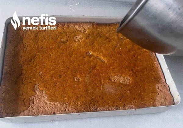 - Fırından çıkınca soğuk şerbeti dökelim. Kek şerbetini çekince (30 dakikada şerbeti çekmiş olur)