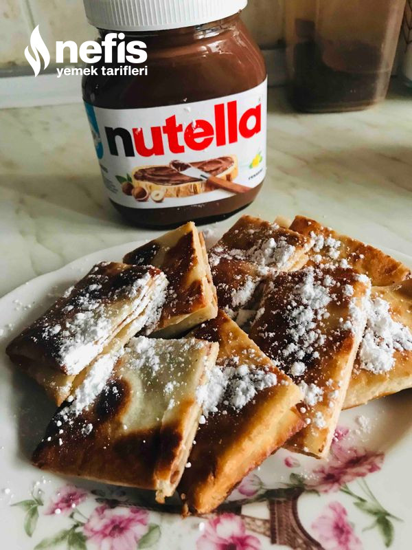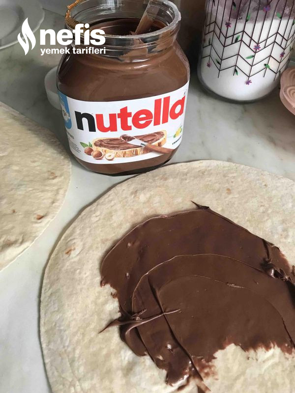 1. Öncelikle lavaşımızı tezgahımıza alıyoruz. İçine nutella sürüyoruz katılıyoruz sonradan.