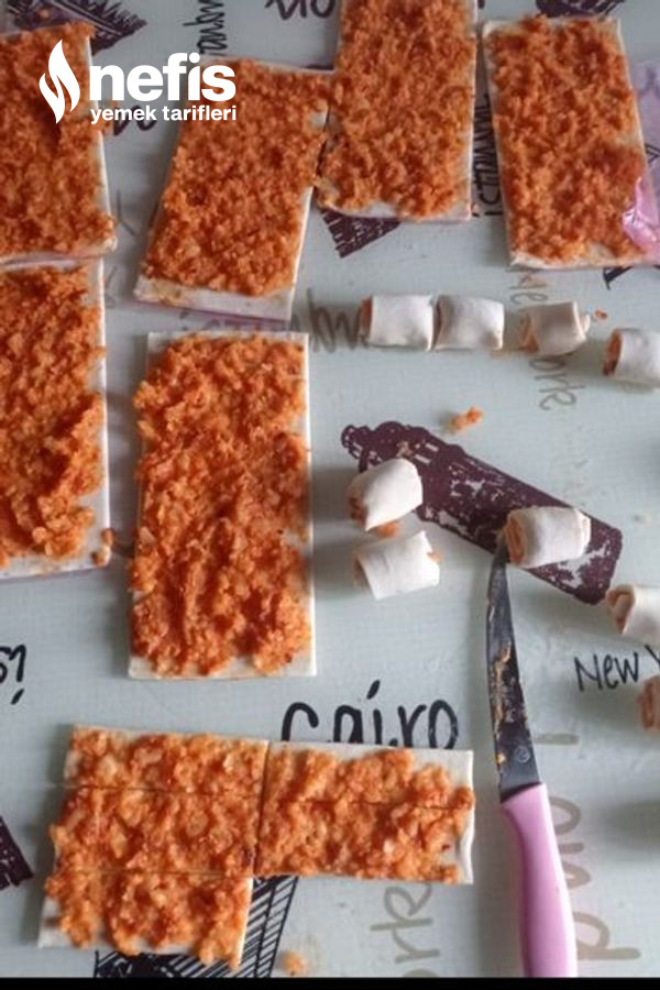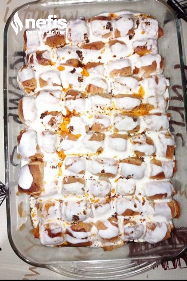 - Rulo biçiminde sarıp hafif yağladığımız fırın tepsimize dizelim.