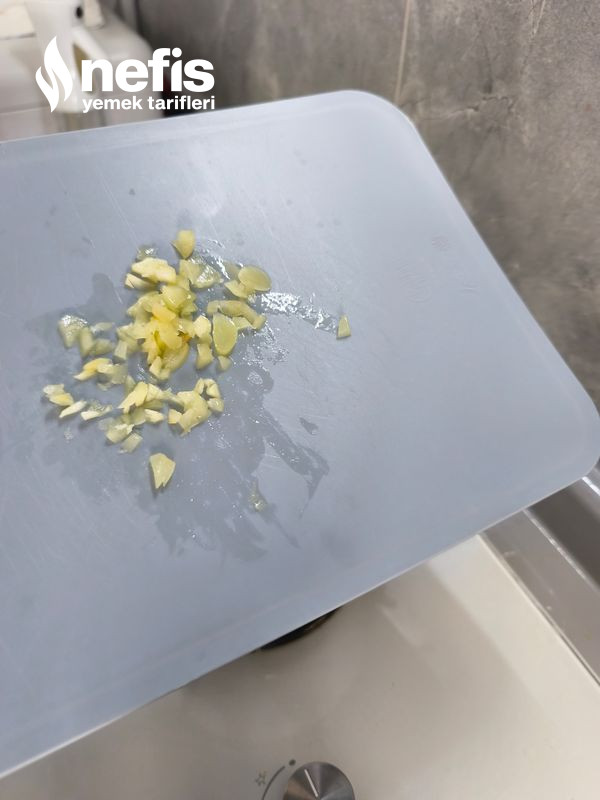 - Zeytinyağını bir tencereye alalım. İçine ince kıyılmış sarımsakları ekleyelim.