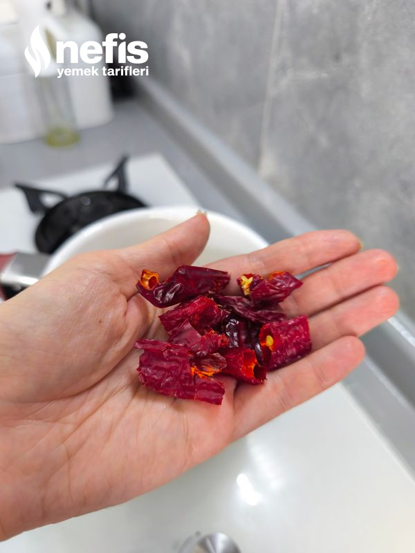- 3-4 tane kurutulmuş acı biber (acı düzeyinize nazaran ayarlayabilirsiniz miktarları)