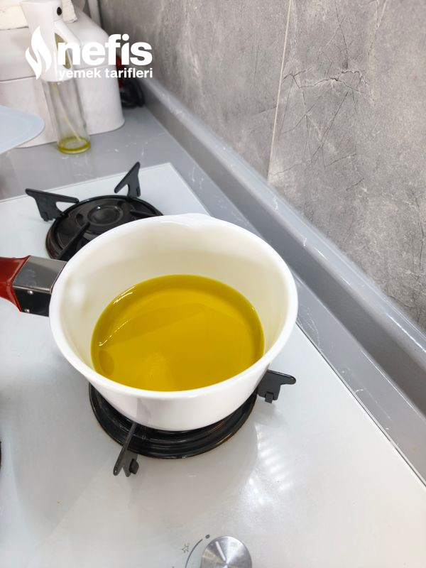 - Ocağın altını en kısıkta açalım. Zeytinyağı ısınana kadar karıştıralım. Yağ kaynamasın yalnızca ısınsın lütfen.