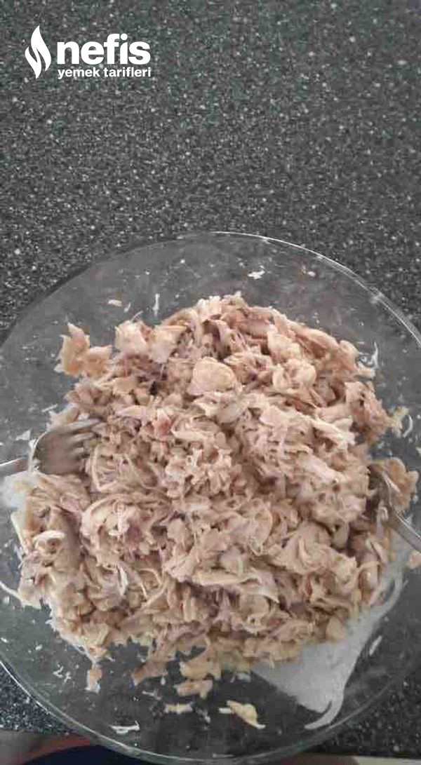- Pişen tavuk göğüslerini çatal yardımı ile tiftikliyoruz.