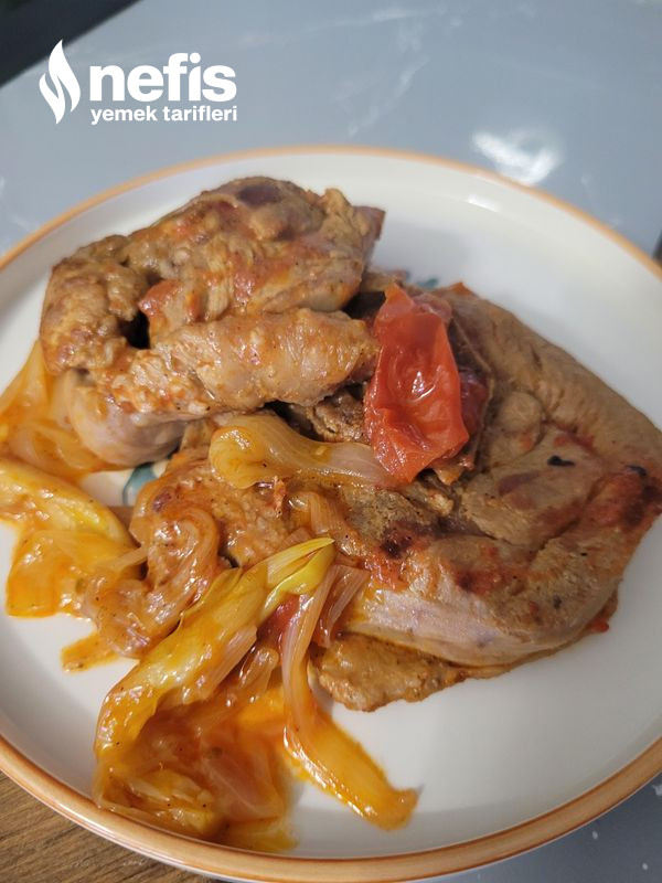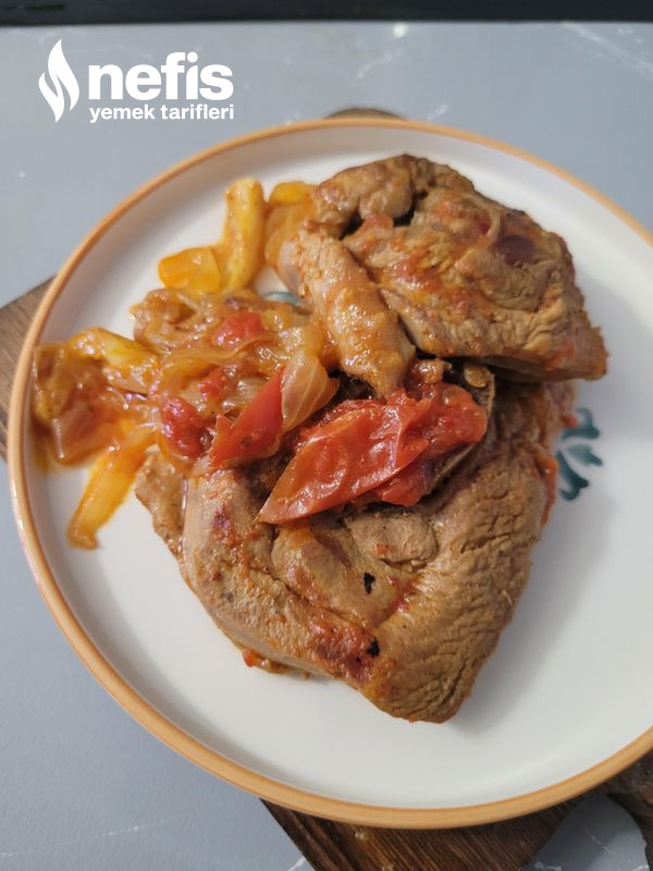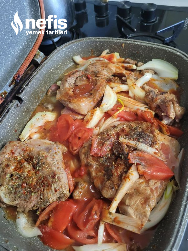 - Üzerine iri doğranmış kuru soğanları ve salçalı suyu gezdirerek en kısık ayarda pişmeye bırakalım.