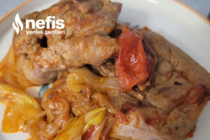 - Üzerine iri doğranmış kuru soğanları ve salçalı suyu gezdirerek en kısık ayarda pişmeye bırakalım.