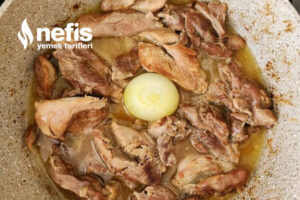 - Hafifçe üzeri kızaran etlerimizin ortasına bir bütün soğan yerleştirelim.