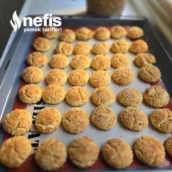 4. Önceden ısıtılmış 180 derecede fırında üstü hafif kızarıncaya kadar pişirin kurabiyeyi tepside soğumaya bırakın nefis kurabiyemiz hazır afiyet olsun.