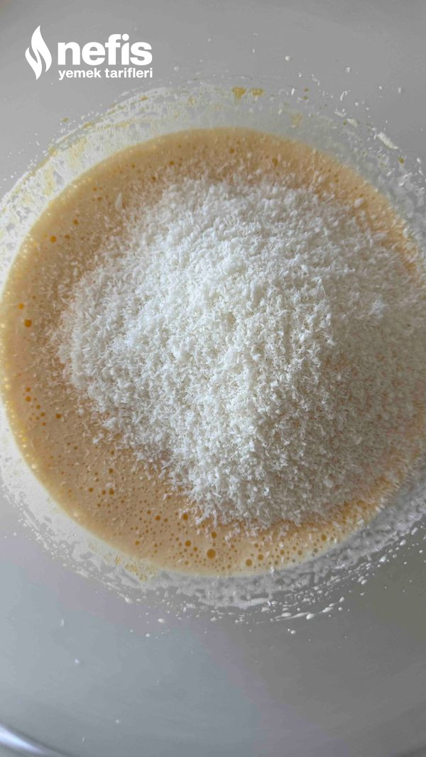 2. Un, hindistan cevizi ve kabartma tozu ekleyip karıştırın.