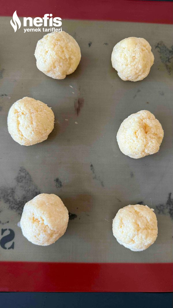 4. Ellerinizi ıslatıp yuvarlak formlar verin, fırın tepsisine dizin.