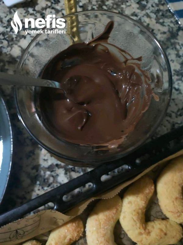 4. Piştikten sonra da uç kısımları benmari metodu erittiğimiz çikolataya batıralım damak tadınıza nazaran ceviz fındık ya da antep fıstığına bulayabilirsiniz. Çok lezzetli bir tanım benim favorim kıyır kıyır oluyor ağızda dağılıyor. Deneyecek olanlara afiyet olsun elinize sıhhat şimdiden👌🏻😘.
