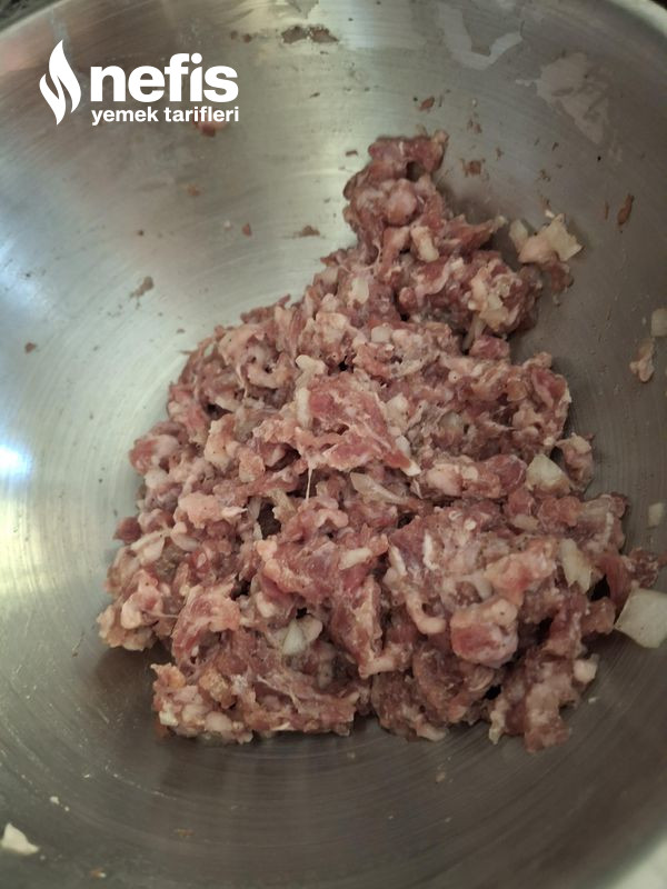 - Kıyma, karabiber ,soğan ,tuz ve suyu ekleyip karıştıralım.