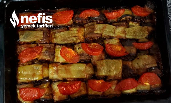 - Fırından çıkardığımız patlıcanla kıymayı saralım, tepsiye yada borcama dizelim.