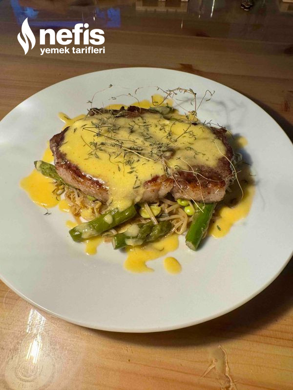 6. Bir tencerede su kaynatalım. Üzerine bir kase kap koyalım. Benmari adabı olacak halde kasemize sade yağı ve yumurtayı çırpma teli ile çırpalım. Burada dikkat etmemiz gereken mevzu fazla ısı olmayacak biçimde benmari yapmak. Sosumuz kıvam alınca tuz ve limonu ekleyip çırpalım. Krema kıvamını aldığında sosluğumuza alalım.