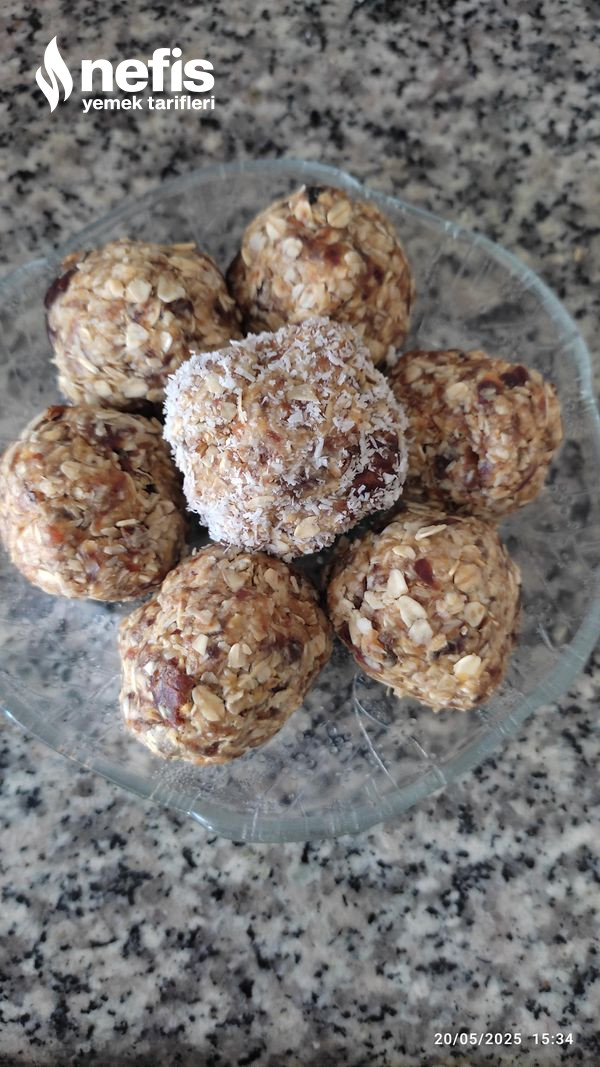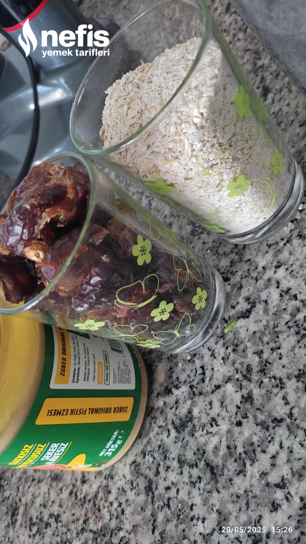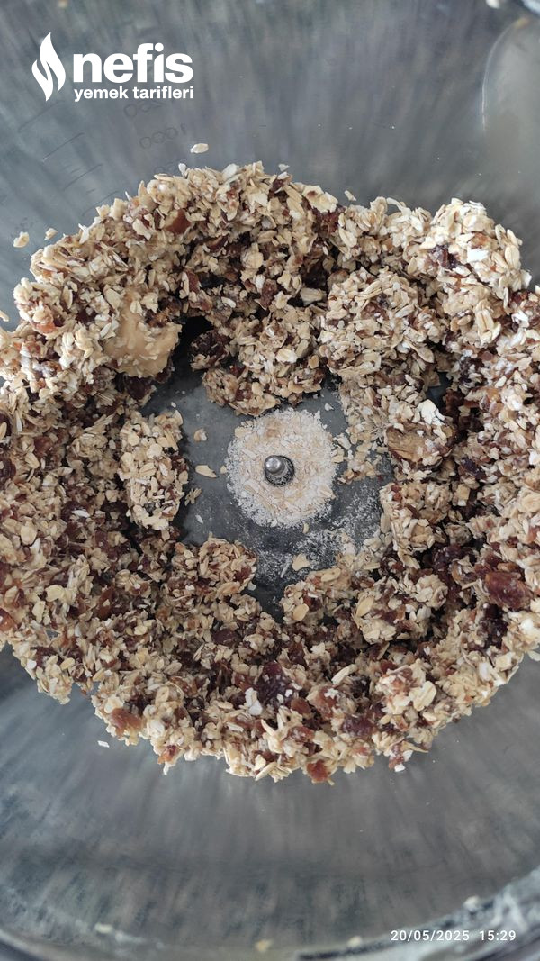- Yulafları ayıklanmış hurmaları ve fıstık ezmesini rondoya koyup çekiyoruz.