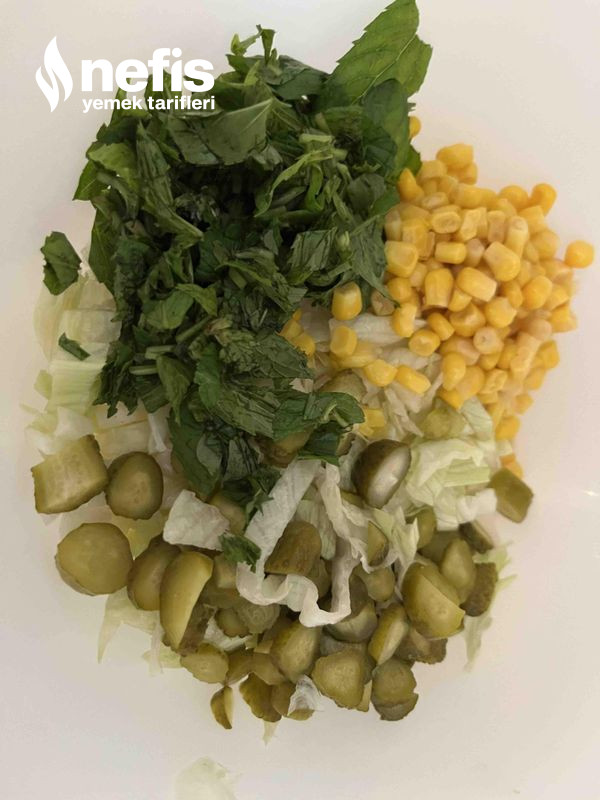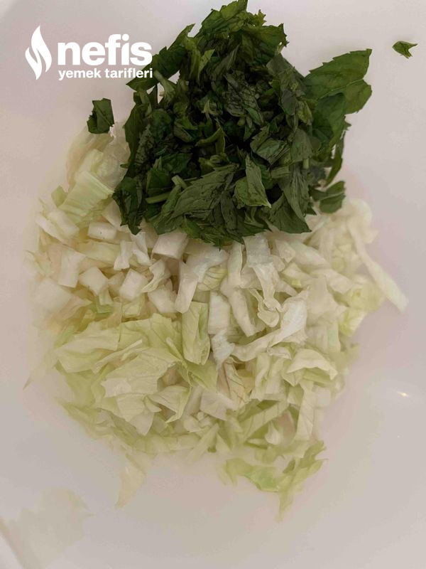 - Iceberg marul ve nane yıkanır küçük küçük doğranır.