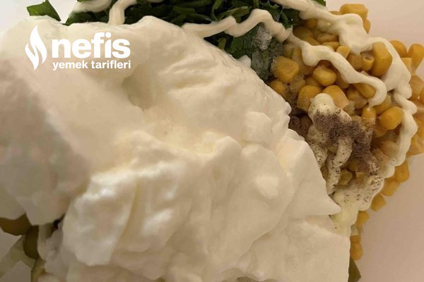- Yoğurt,mayonez ve sarımsakta ek edilir son olarak tuz ve karabiber eklenir.