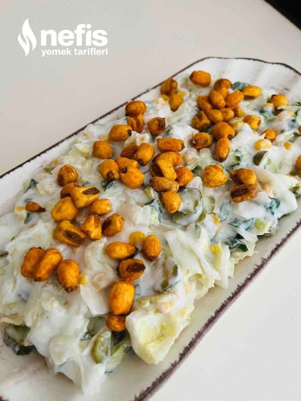 - Üzerine soslu mısır çıtırlık veriyor.