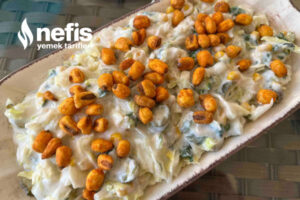 - Yoğurt,mayonez ve sarımsakta ek edilir son olarak tuz ve karabiber eklenir.