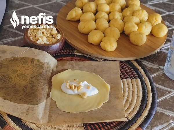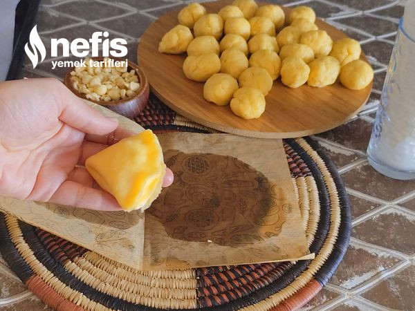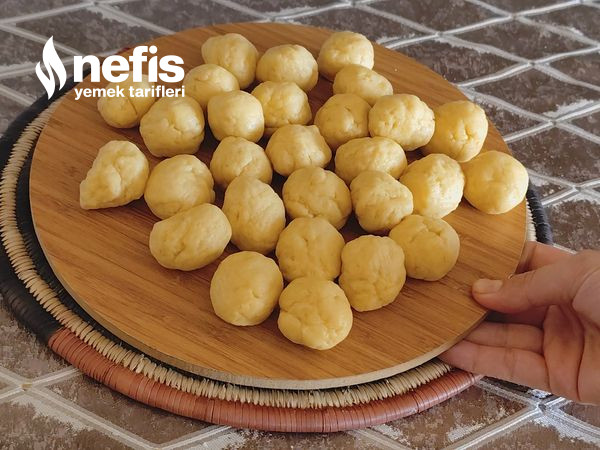 - Ceviz büyüklüğünde kesimler koparıp yuvarlayın.