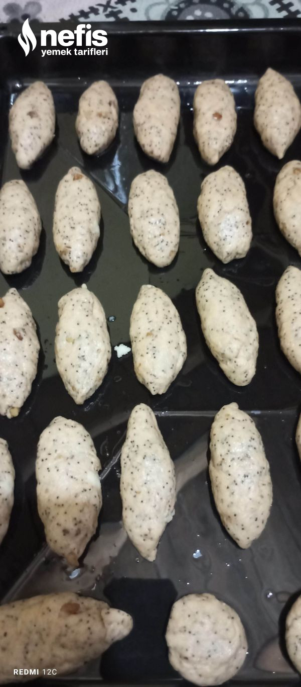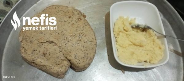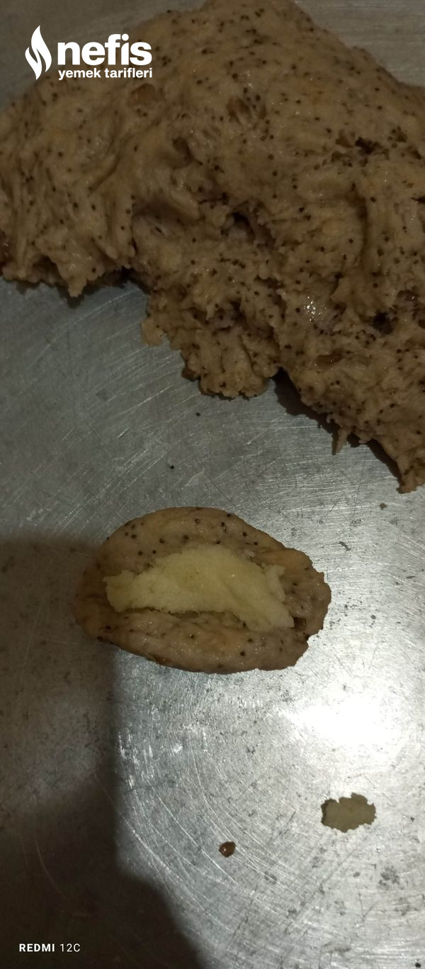 - Un ve kabartma tozu hariç başka bütün gereçleri de ekleyip karıştırın ,ardından kabartma tozu ve unu karıştırın ve harca denetimli bir formda yumuşak bir hamur elde edene kadar un ekleyip karıştırın.