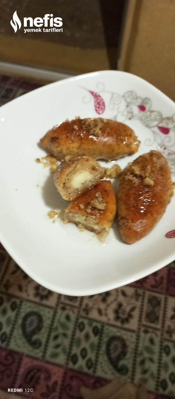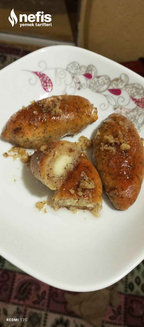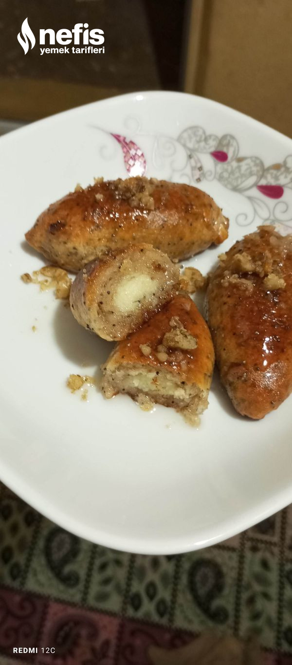 - Hamurdan yumurta büyüklüğünde kesimler koparıp yuvarlayın elinizde açın ve içine irmikli kaymağı koyun ve kapatın .