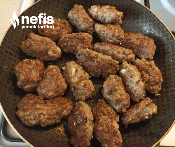 3. Kızarmaya başlayan köfteler farklı bir kaba alınır, daha sonra sosu hazırlanır .