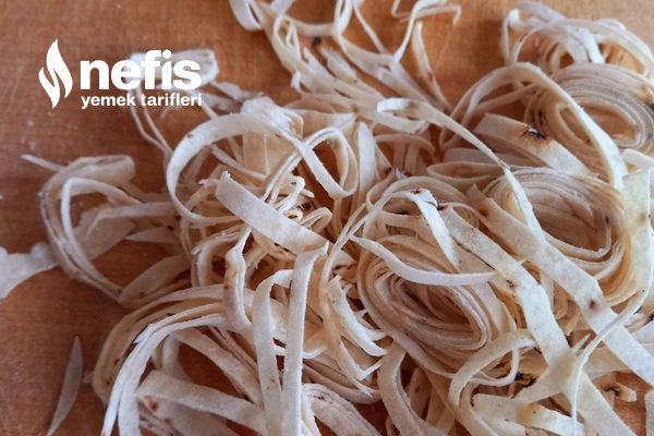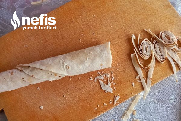 3. Rulo yapıp makarna keser üzere bıçakla ince şeritler halinde keselim.