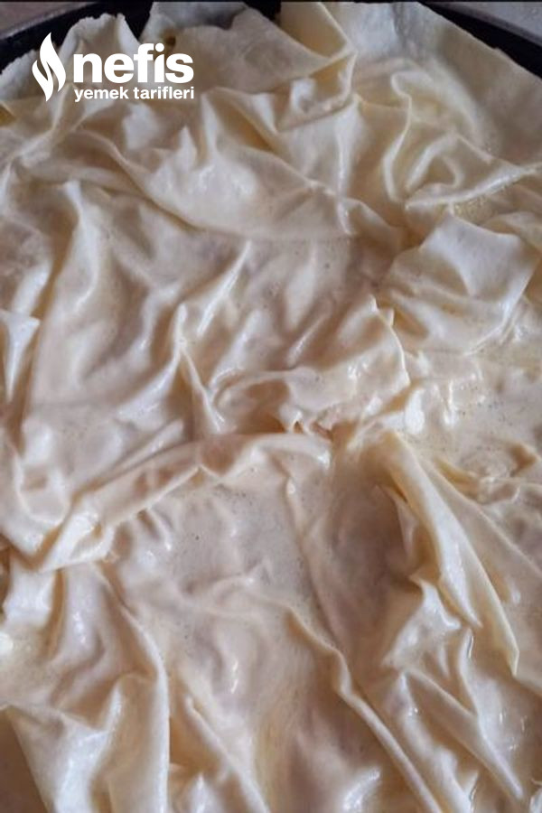 14. En üsteki yufkaya sostan gezdirelim ve 180 derece ısıtılmış fırında kızarıncaya kadar pişirelim.