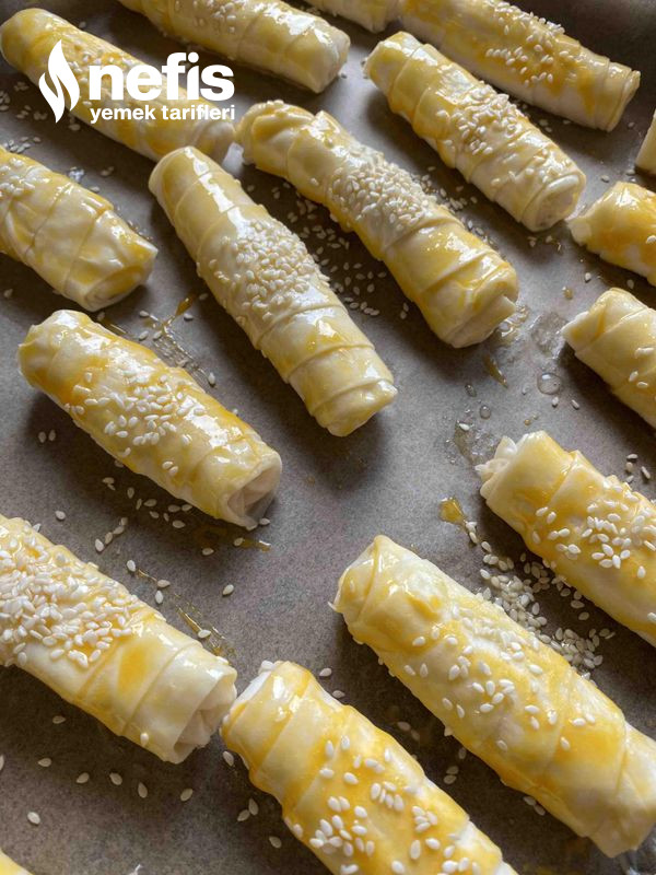 2. Patatesli harçtan yufkanın içine alalım kalem böreği biçiminde içe hakikat saralım, öbür yufkalarıda birebir halde saralım çabucak tüketecekseniz, maden suyu ve yağlı karışımının içinde önlü artlı çevirelim, tepsimize dizelim, üzerine yumurta sarısı sürdüğümüz böreklere susam serpiştirelim.