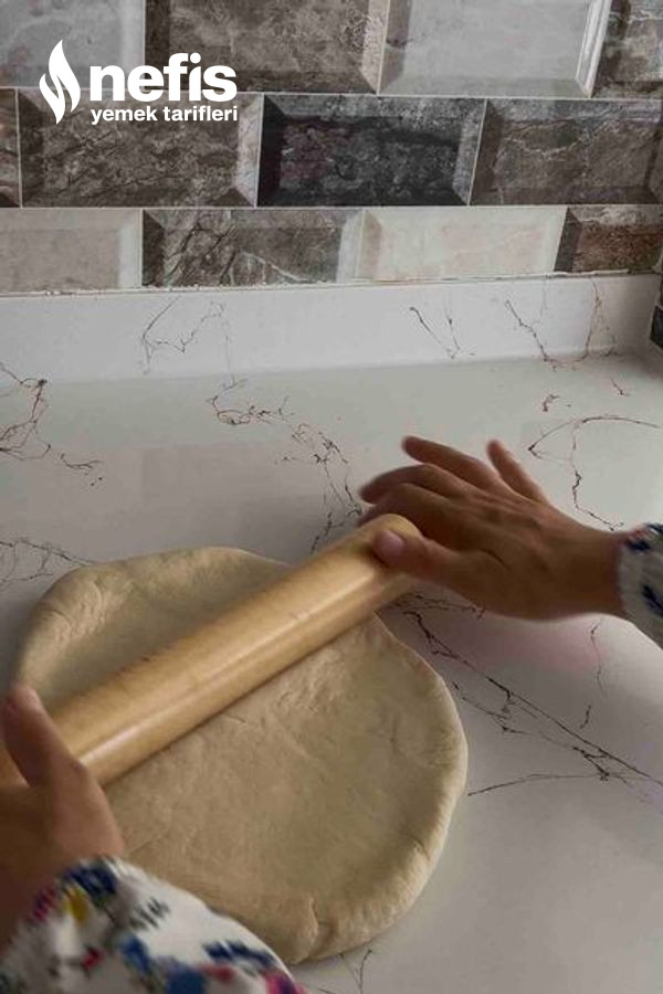 - Mayaları gelen hamurlardan birinci evvel sade olanı tezgaha alalım ve merdane ile dikdörtgen formunda açalım.