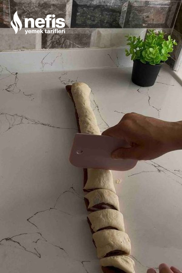 - Uzun kenarlardan başlayarak rulo halinde saralım ve iki parmak kalınlığında keselim.