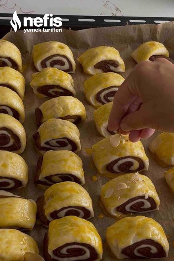 - Yağlı kâğıt serili fırın tepsisine dizelim üzerlerine yumurta sarısı sürelim file badem serperek 200 derece ısıtılmış fırında alt üst ayarda 25-30 dk kızarana kadar pişirelim. Afiyet olsun 😍.