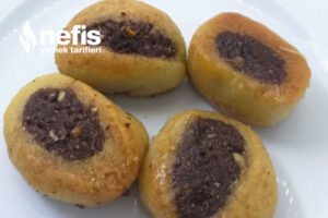 5. Elimizle yuvarlayıp iki parmak büyüklüğünde kesip, tepsiye diziyoruz. Ben bir kaç adedini kadayifa buladım lakin çok bir fark olmadığı için başkalarının sade yaptım.