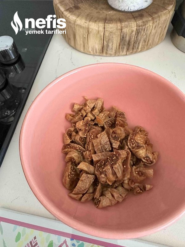 - Doğradığımız incirleri üzerini geçmeyecek kadar sıcak suda yumuşayana kadar bekletiyoruz.