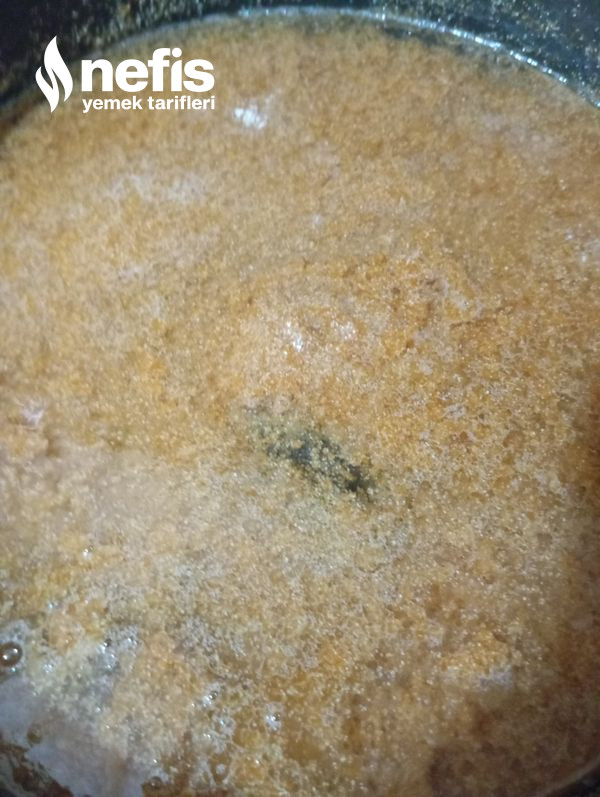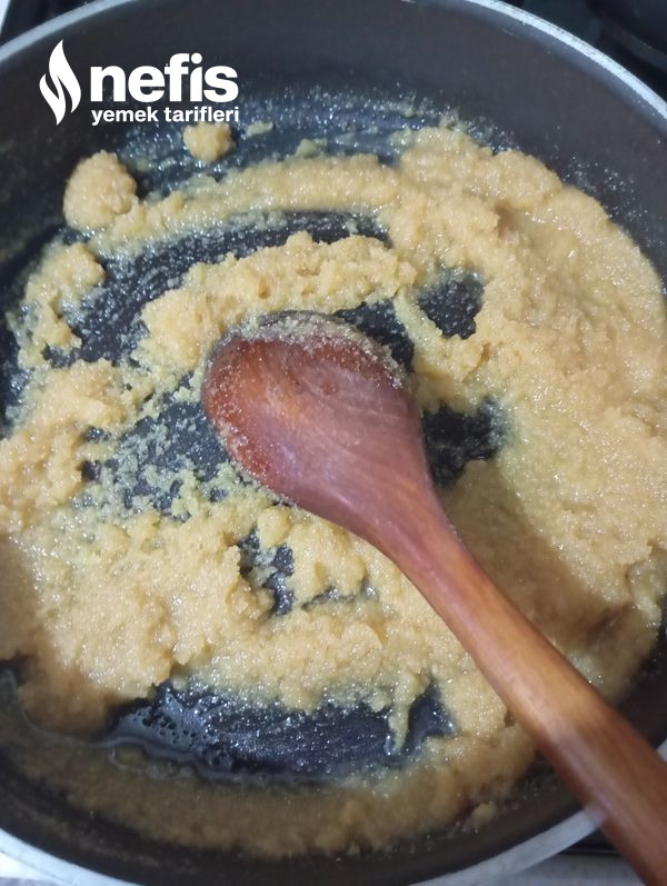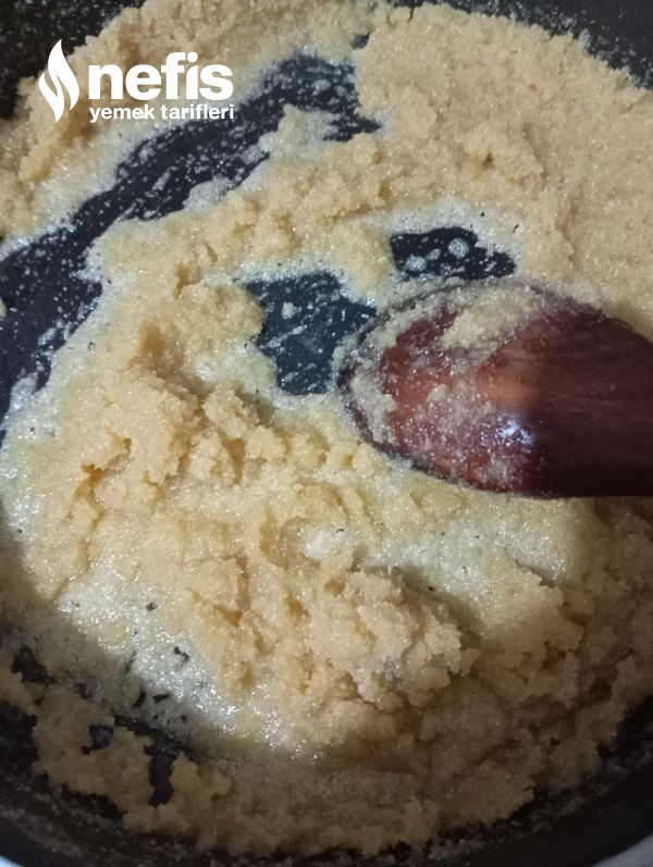 - Daha sonra kavrulan irmiğimizin üstüne şerbetimizi dökelim ocağın altını açalım, şerbeti çekene kadar karıştıralım.